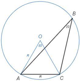 AC/sin30 =2R => AC :1/2 =2R => AC=R