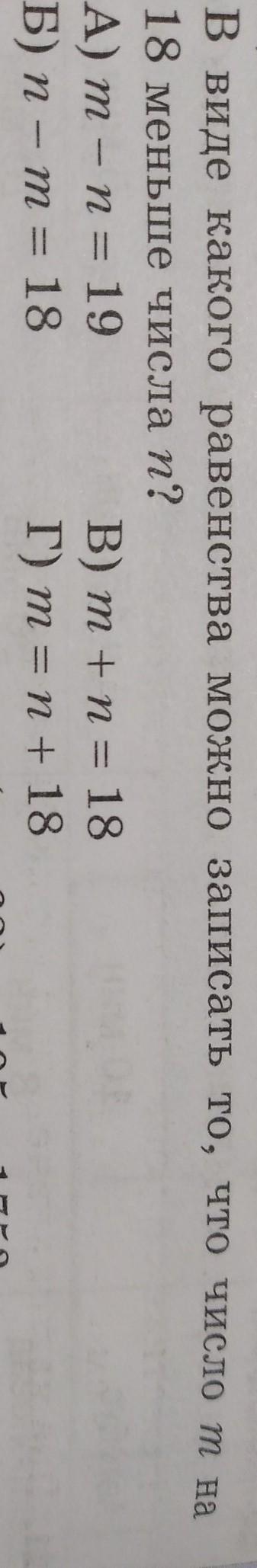 в виде кокого равенства можно записать то что число t на 18 меньше числа n.срочно помогите пожалуйста!!!