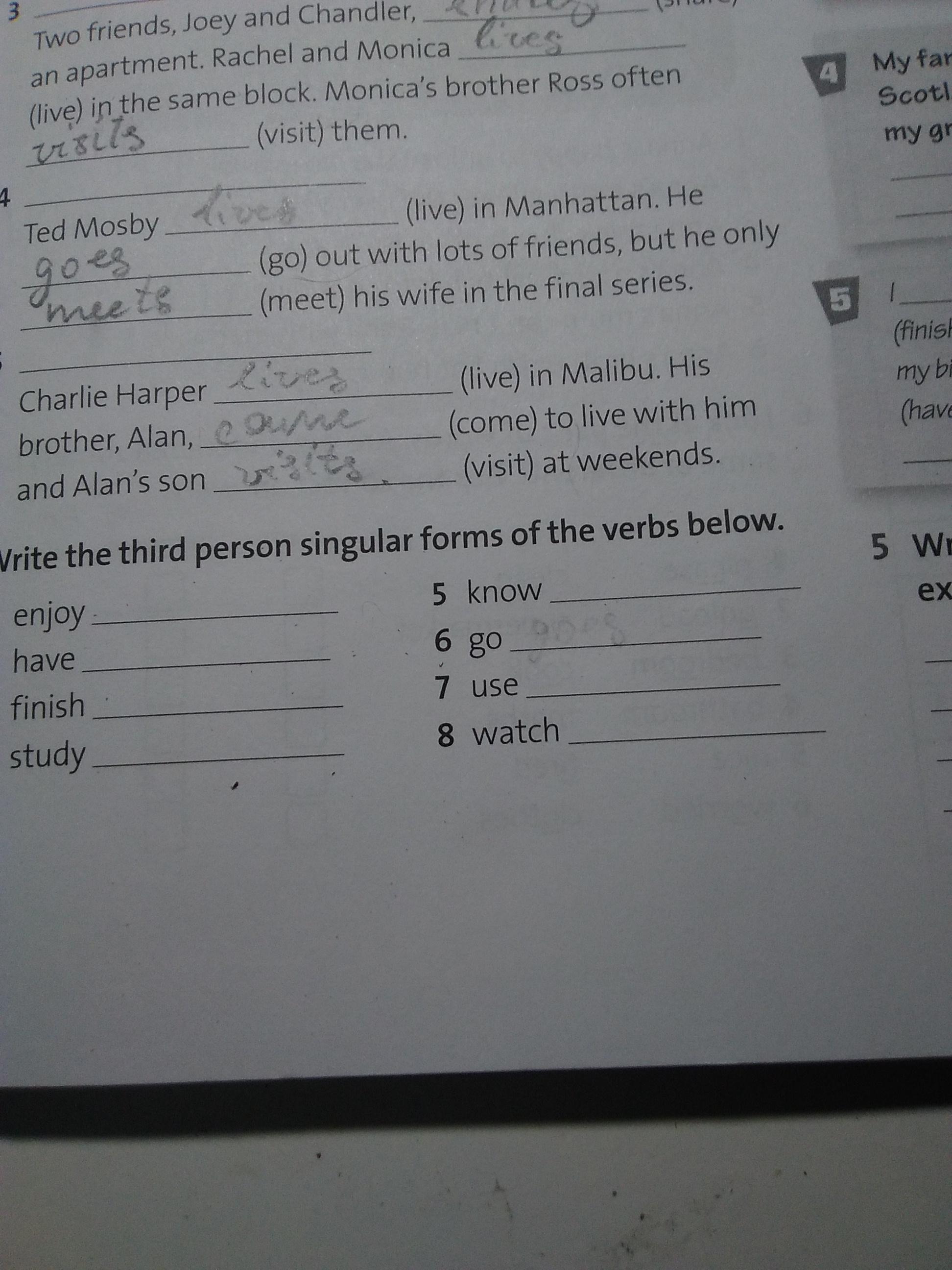 напишите формы единственного числа от третьего лица для глаголов ниже