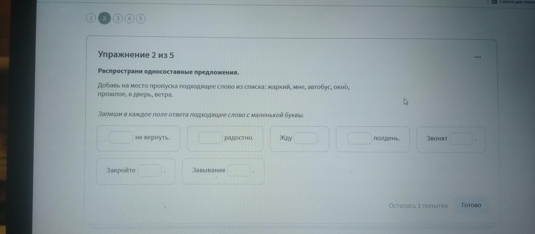 В данном упражнении слова подбираются так, чтобы в готовых предложениях имелась смысловая связь.