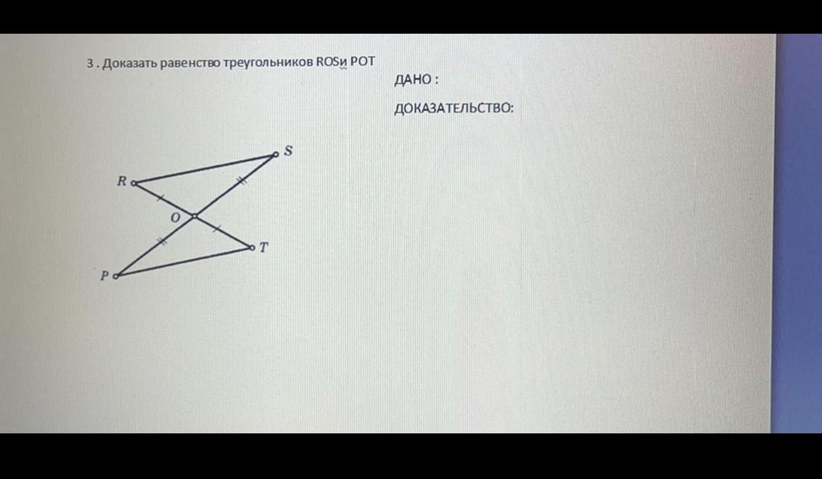 Дано: треугольники ROS, TOP, RO = TO, SO = PO