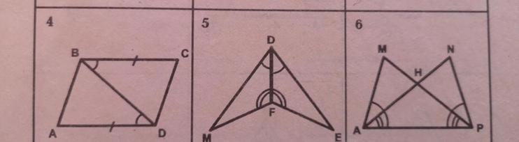 4 - AD = BC, ∠ADB = ∠CBD, BD - общая сторона ⇒ ΔADB = ΔCBD по I признаку (по двум сторонам и углу между ними)