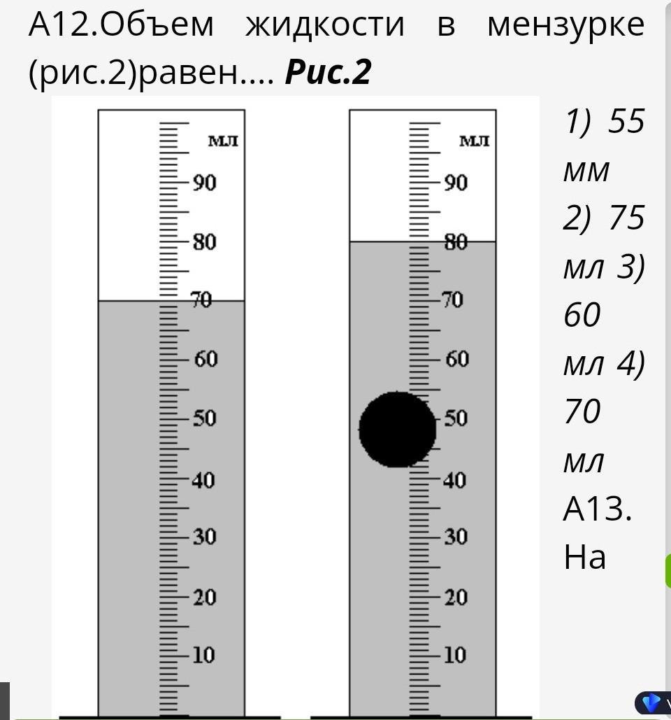 Объём жидкости в мензурке: