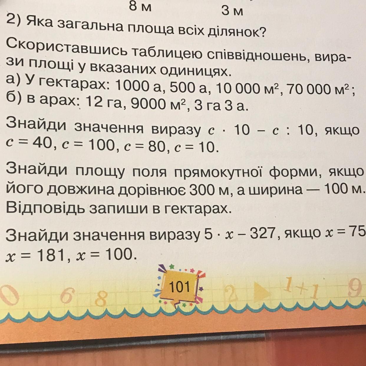 3)Площа поля дорівнює :S=a*b= 300 * 100 = 30000м²= 3 га
