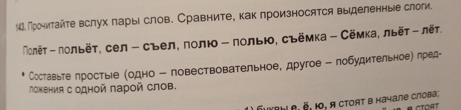 прочитайте вслух пары слов.Сравните,как произносится выделенные слоги. составьте простые (одно - повествовательное,другое - побудительное) предложение с одной парой слов