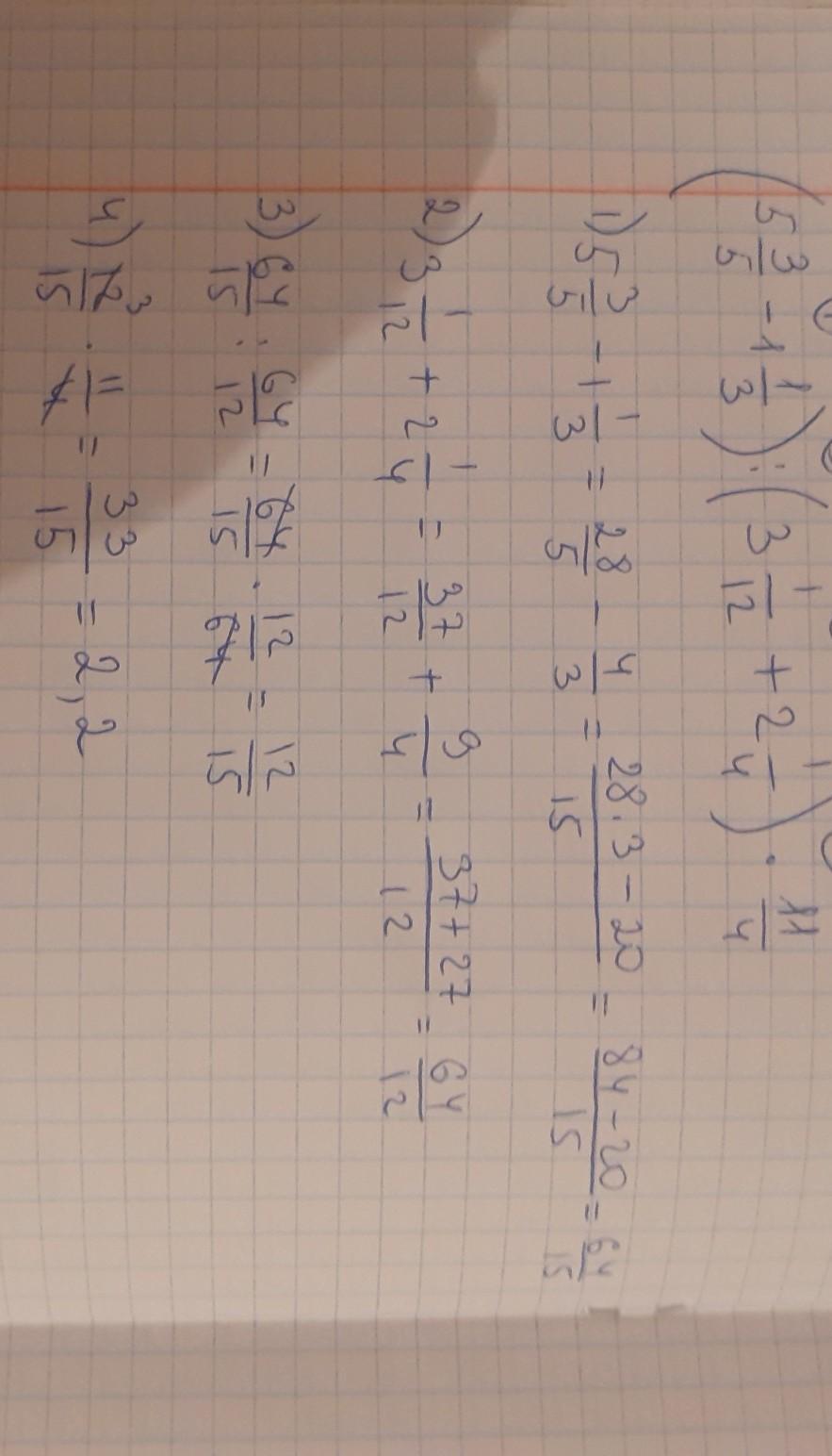 Сначала решаем то, что в скобках, затем делаем деление, после деления умножение. Ответ: 2,2
