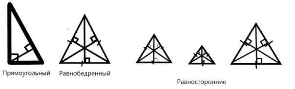 построить прямоугольный равнобедренный треугольник и провести в нем высоты. Построить три равносторонних треугольника и провести в них высоты. Помагите пажалуста