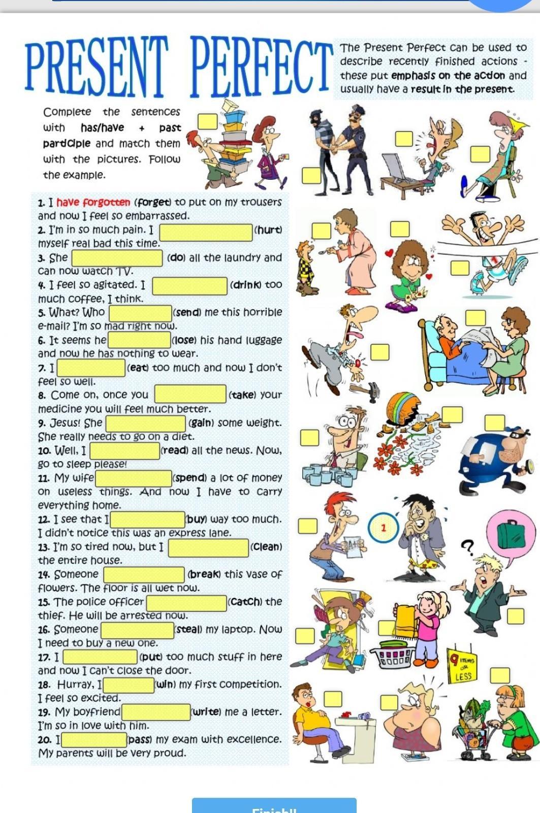 Complete the sentences with has/have past pardciple and match them with the pictures. Follow the example.