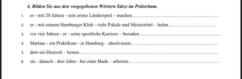 Bilden Sie aus den vorgegebenen Wörtern Sätze im Präteritum.
