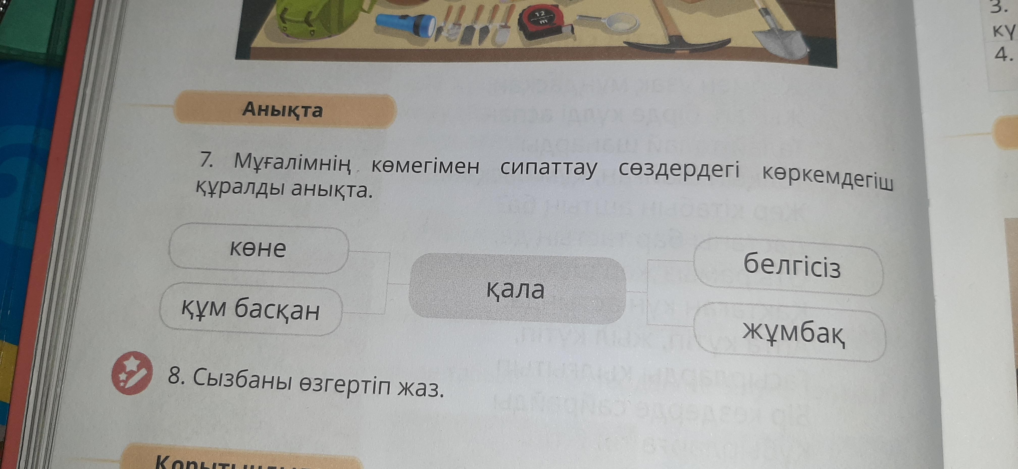 7 мұғалімнің көмегімен сипаттау сөздердегі көркемдегіш құралды анықта