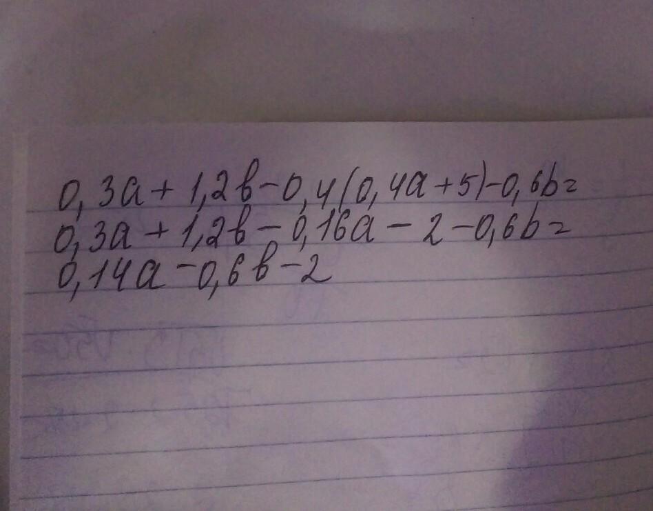 0,3a+1,2b-0,4(0,4a+5)-0,6b=