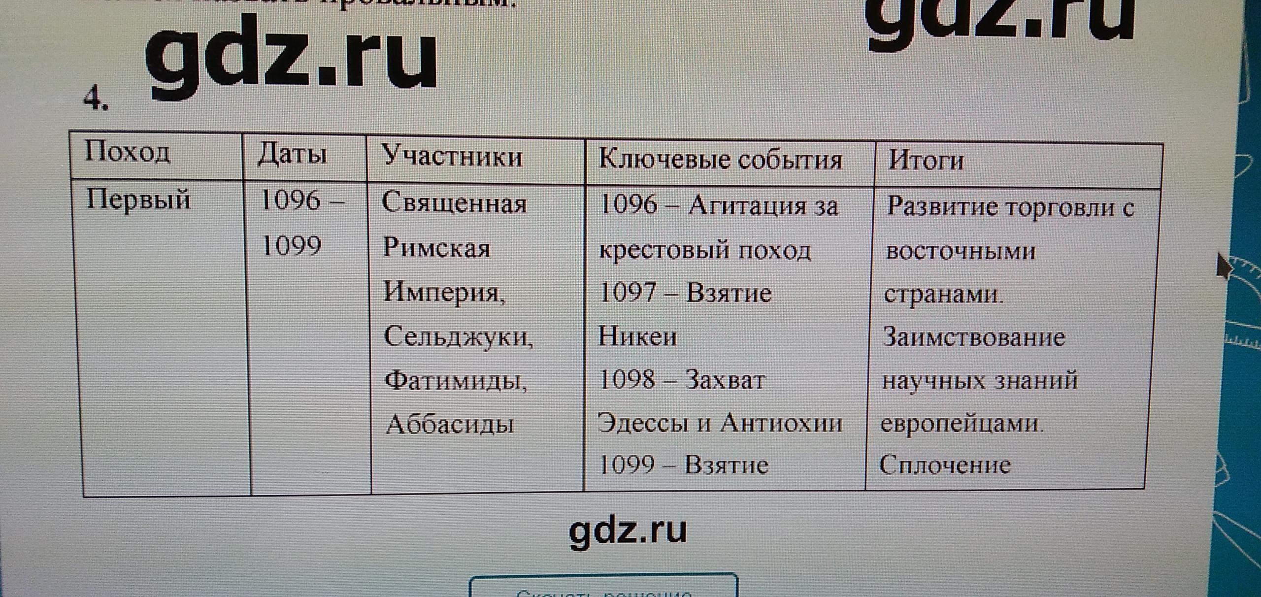 Таблица по крестовым походам?