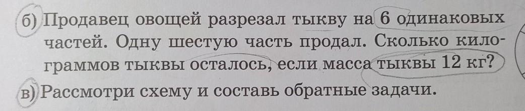 осталось 10 кг 12:6=2=12-2=10 обратная задача продали 5/6 кг от тыквы сколько осталось если масса тыквы 12 кг