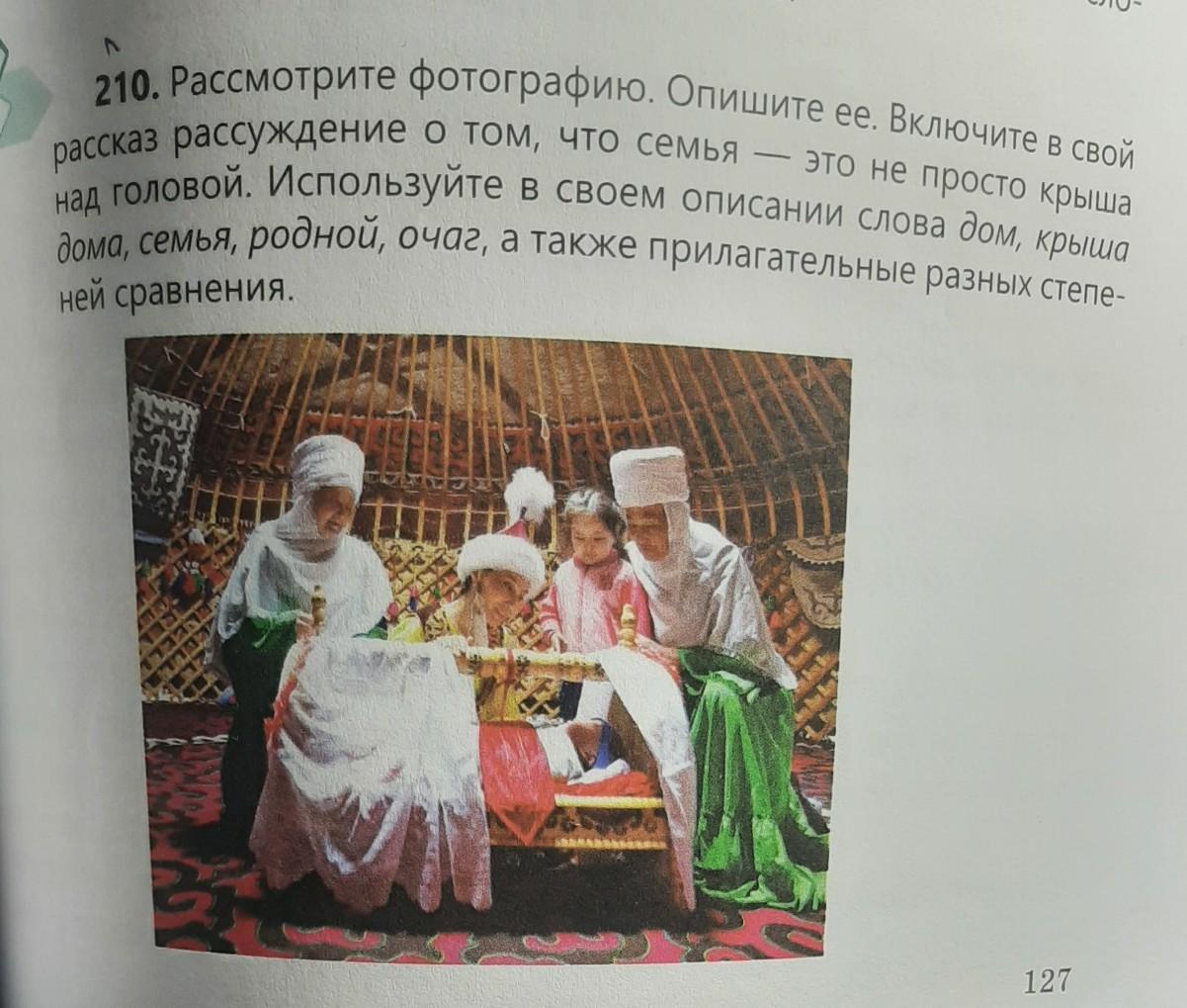 B 210. Рассмотрите фотографию. Опишите ее. Включите в свой рассказ рассуждение о том, что семья — это не просто крыша над головой. Используйте в своем описании слова дом, крыша дома, семья, родной, очаг, а также прилагательные разных степе- ней сравнения.