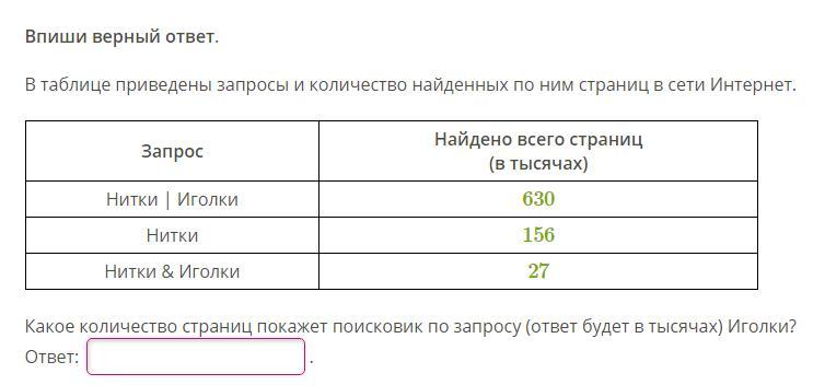 Из общего числа страниц по обоим словам вычитаем те, где не встречается слово Нитки, но не встречается слово иголки.