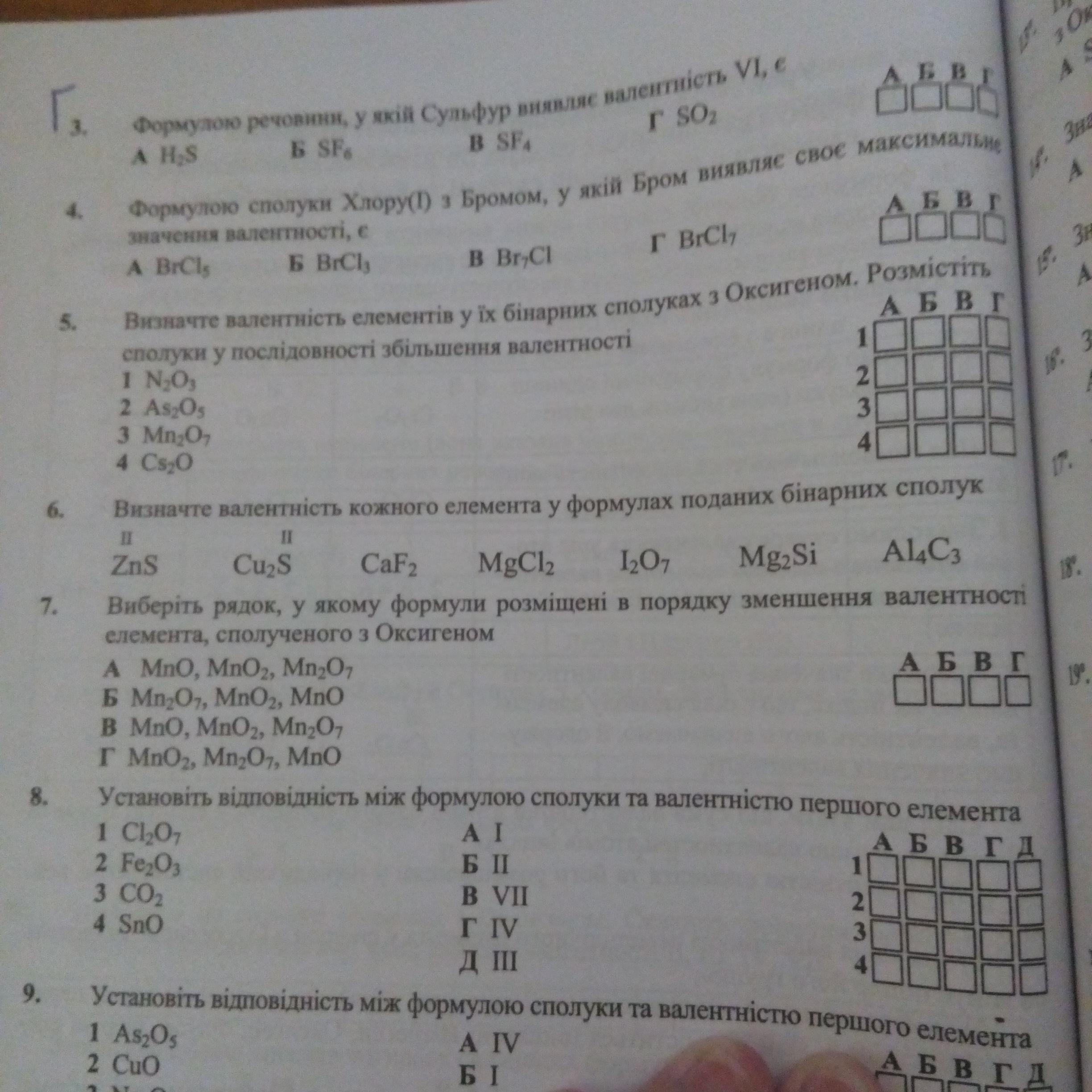 6) 1.S(2)2.Cu(1) 3.Ca(2) F(1) 4.Mg(2) Cl(1) 5.I(7) O(2) 6.Mg(2) Si(4) 7.Al(3) C(4)