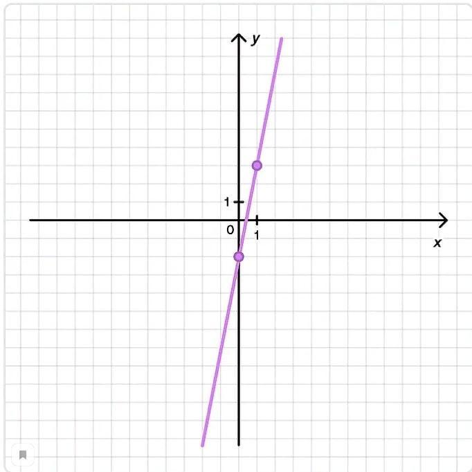 Ответ: угловой коэффициент к больше нуля, так как при увеличении значения х значение функции увеличивается. Значение b=-2, именно такая длина отрезка, который отсекает прямая от начала отсчёта по вертикали.