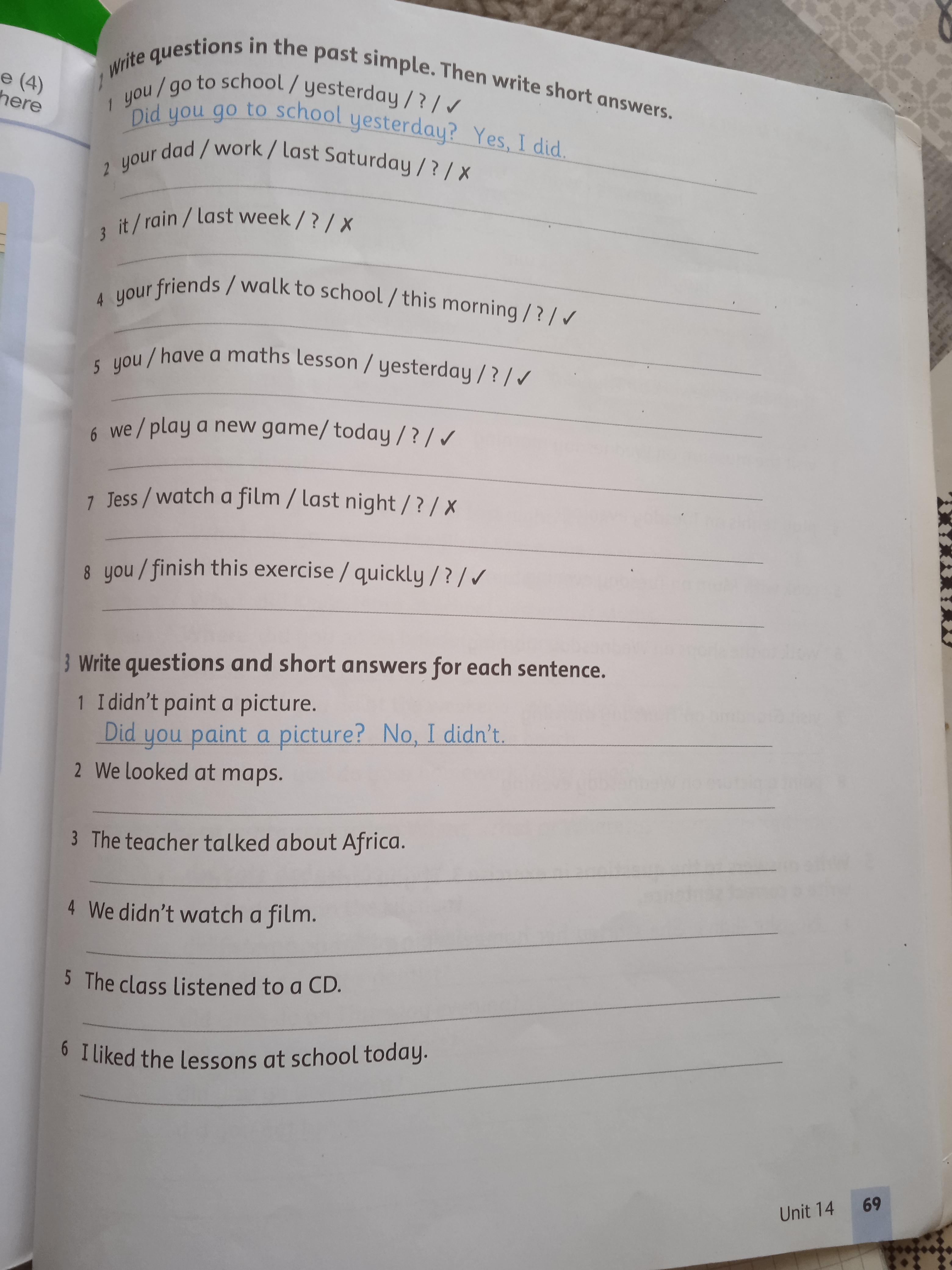 4) Did your friends walk to school this morning? Yes, they did