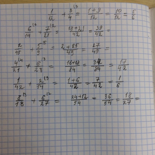 Сложите дроби и сократите полученную дробь: 3/18+2/3 6/15+7/20 1/12+3/4 6/14+7/21 2/45+5/9 4/21+6/28 1/42+2/14 8/18+6/27 ПОМОГИТЕ ПОЖАЛУЙСТА ПЛИЗ ПЛИЗ ПЛИЗ!!!!!!!