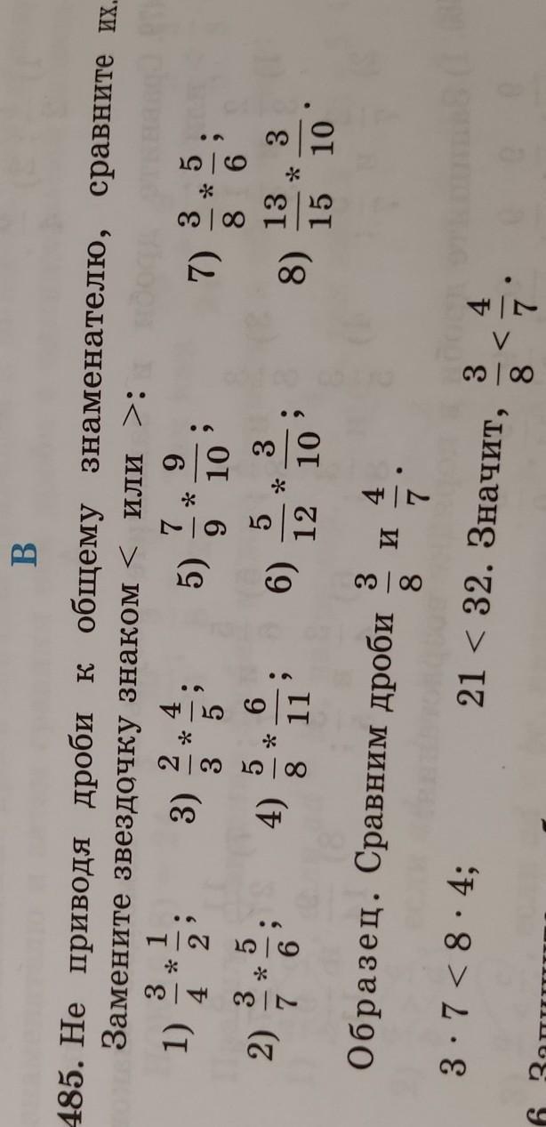 не приводя дроби к общему знаменателю сравните их. замените звёздочку знаком < или > 3/4*1/2