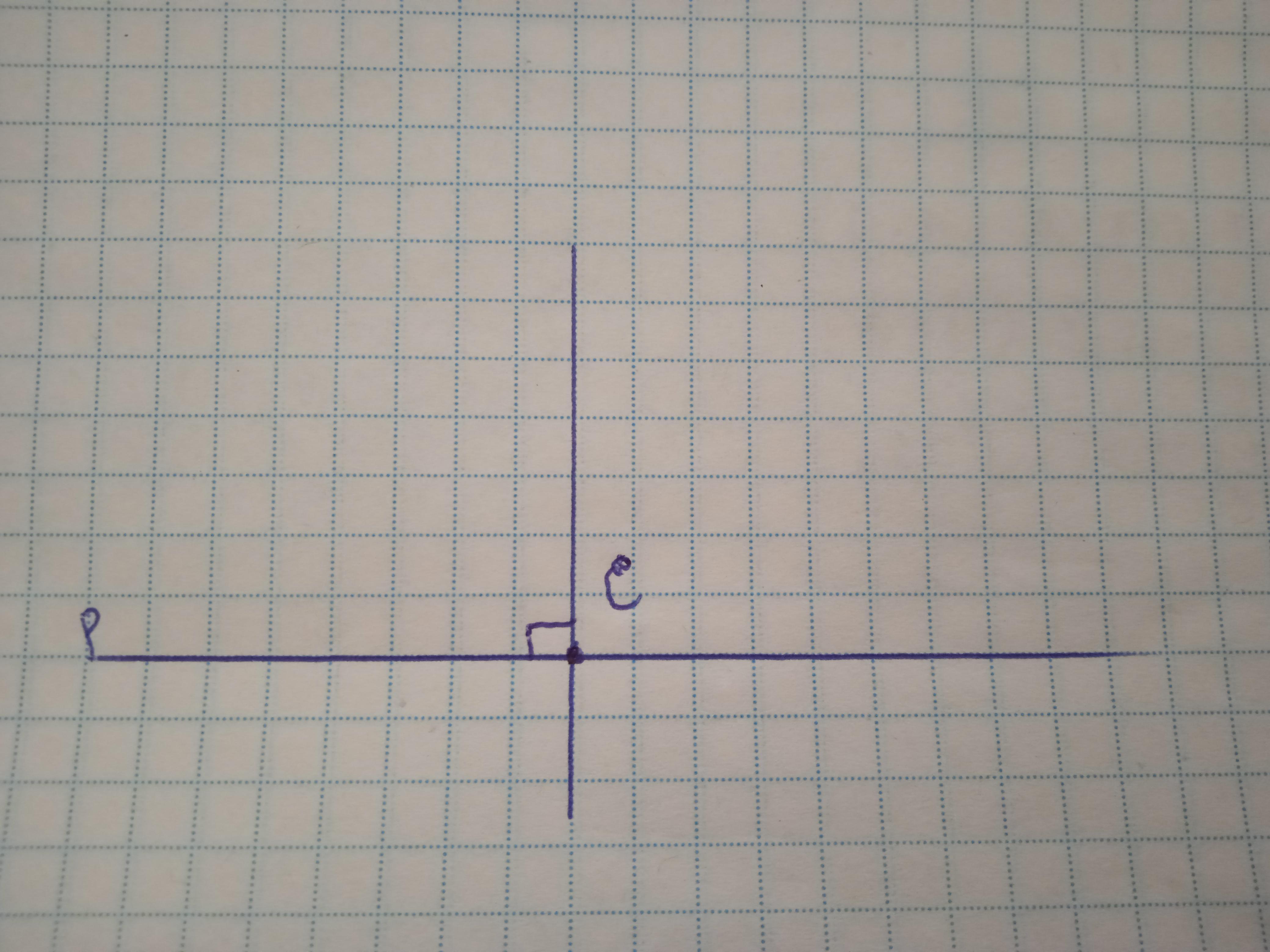 Провести пряму P і відмітити точку C, що належить їй. Провести через точку C перпендикулярну до P