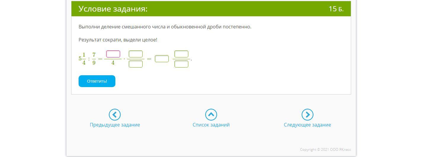 3) 5 1/4:7/9=21/4*9/7=6 3/4