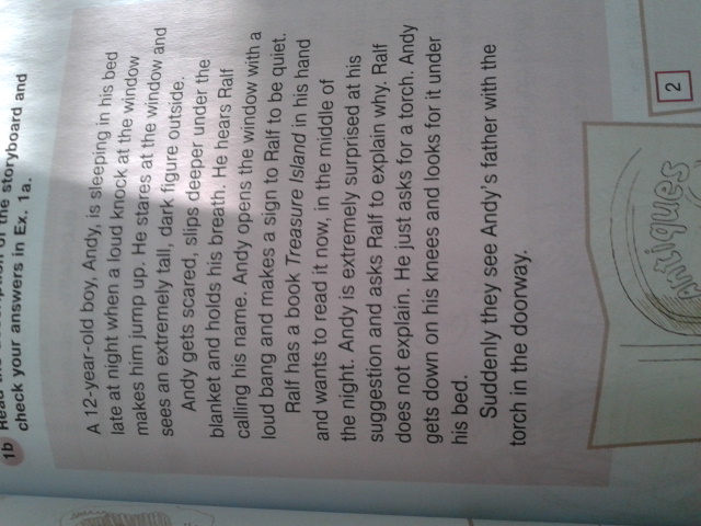 12-летний мальчик, Энди, спит в его постели поздно ночью, когда громкий стук в окно делает его вскочить. Он смотрит в окно и видит чрезвычайно высокий, темную фигуру снаружи. Энди пугается, скользит глубже под одеяло и задерживает дыхание. Он слышит Ральф называя его имя. Энди открывает окно с громким звуком и делает знак, чтобы Ralf быть спокойным. Ральф есть книга Остров сокровищ в руке и хочет читать это сейчас, в середине ночи. Энди крайне удивлен по его предложению и спрашивает Ральф объяснить, почему. Ральф не объясняет. Он просто просит факелом. Энди получает на колени и смотрит на это под кроватью. Вдруг они видят отца Энди с факелом в дверях.
