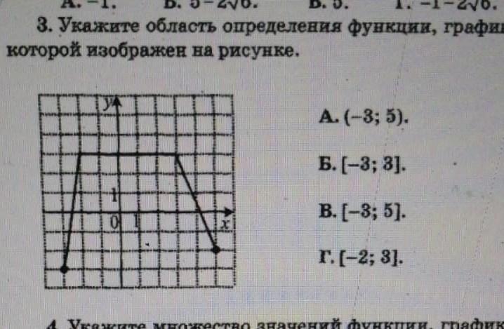 Укажите область определения функции,график которой изображен на рисунке А(-3;5) Б(-3;3) В(-3;5) Г(-2;3)