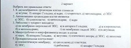 А. Жгутик Б. Аппарат Гольджи В. Ядро Г. Хлоропласт Д. Митохондрия Е. ЭПС