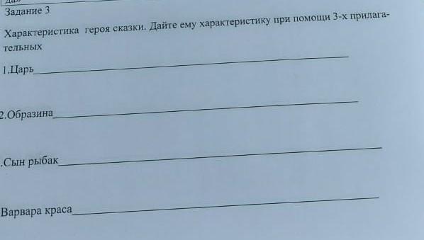 характеристика героев сказки о царе Берендие .при помощи 3х прилагательных : Царь,образина,сын рыбака,варвара краса