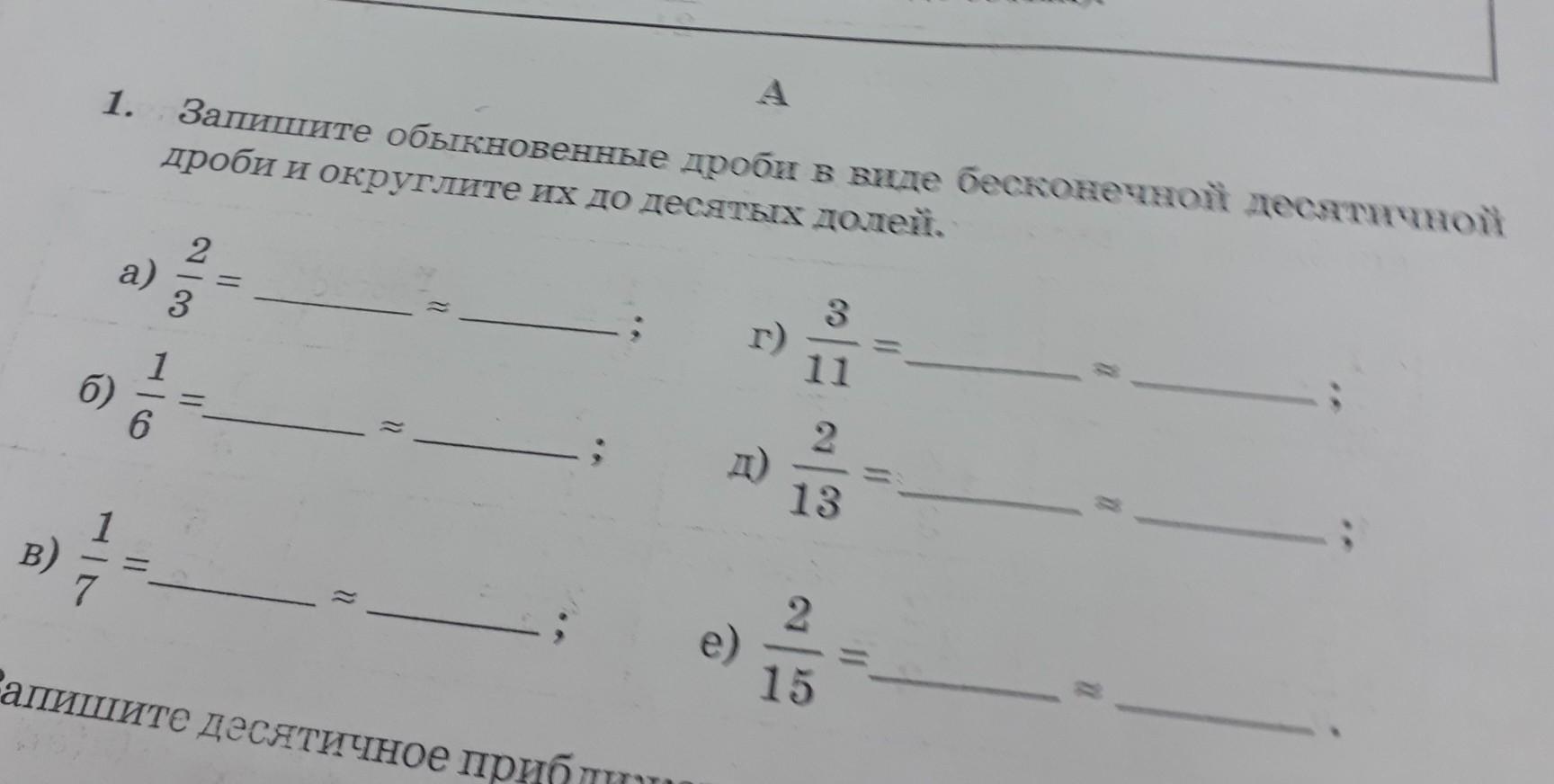 б) 1/6 = 1 : 6 ≈ 0,166... ≈ 0,2