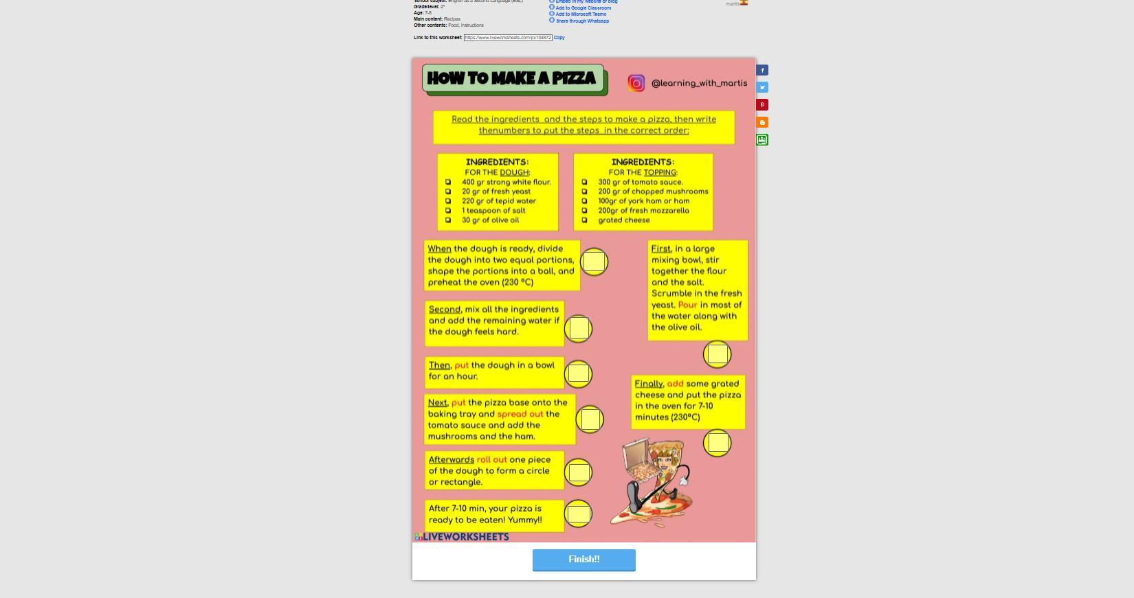 Нужно пронумеровать действия в верном порядке (типа, сперва замешать ингредиенты, потом раскатать тесто и так далее...)