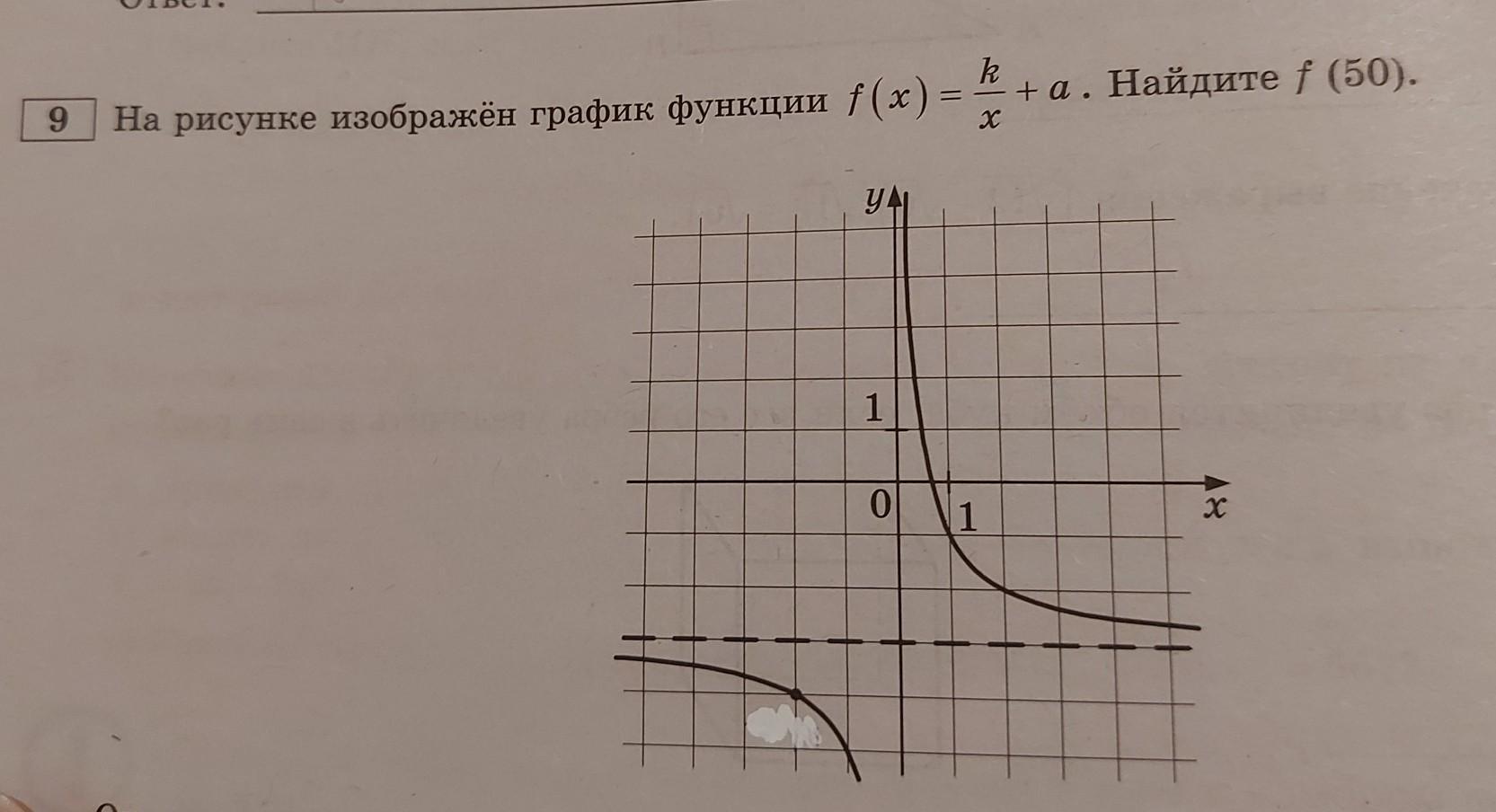 На рисунке изображен график функции f(x)=k/x+a. Найдите f(50).
