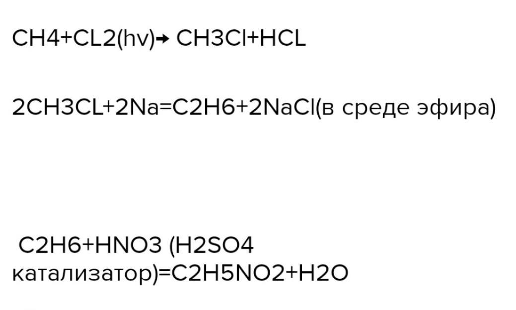 СН4→ СН3С1→ С2Н6→C2H5N02.