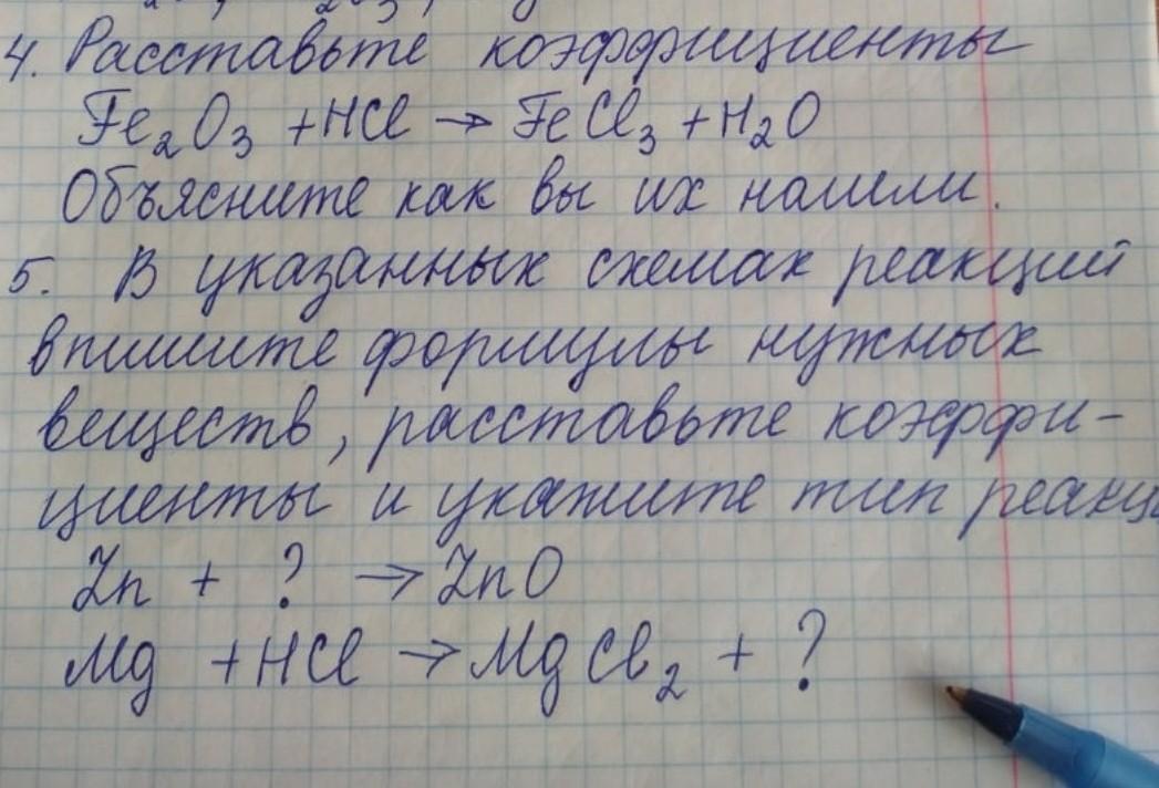 Это не окислительно-восстановительная реакция, ⇒ коэффициенты подбираем логически. Слева железа изначально было 2, значит и справа его должно быть 2, ставим коэффициент 2 перед FeCl₃, слева кислорода 3, значит и справа его должно быть 3, далее смотрим, справа водорода и хлора 6, значит и слева их должно быть 6 (по закону сохранения массы веществ)