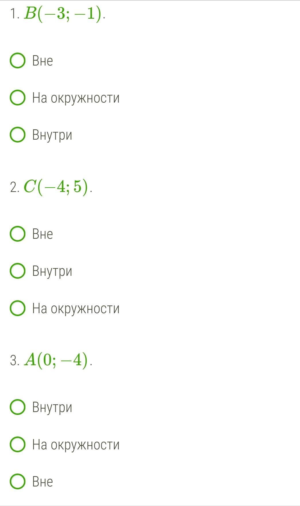 (-3;-1)-----внутри.. (-4; - 5)-------вне. (0; - 4) на окружнлсьи