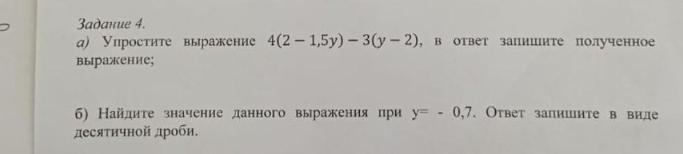 Объяснение: а) 4(2-1,5у)-3(у-2)=4×2-4×1,5у-3×у-3×2 = 8-6у-3у-6=8-6-(6у+3у)=2-9у