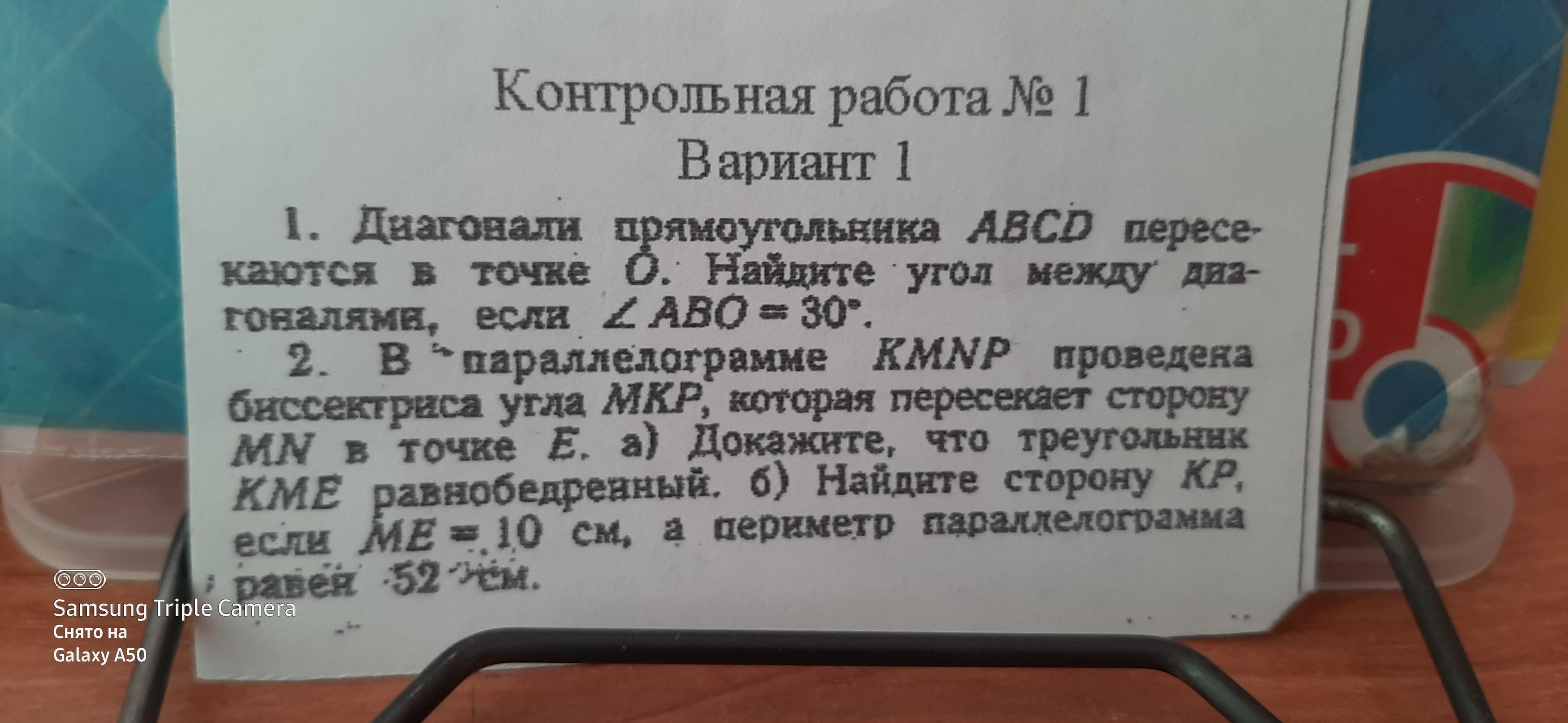 (Так как ΔАВО равнобедренный, потому что ВО=АО, и диагонали прямоугольника равны и точкой пересечения делятся пополам)
