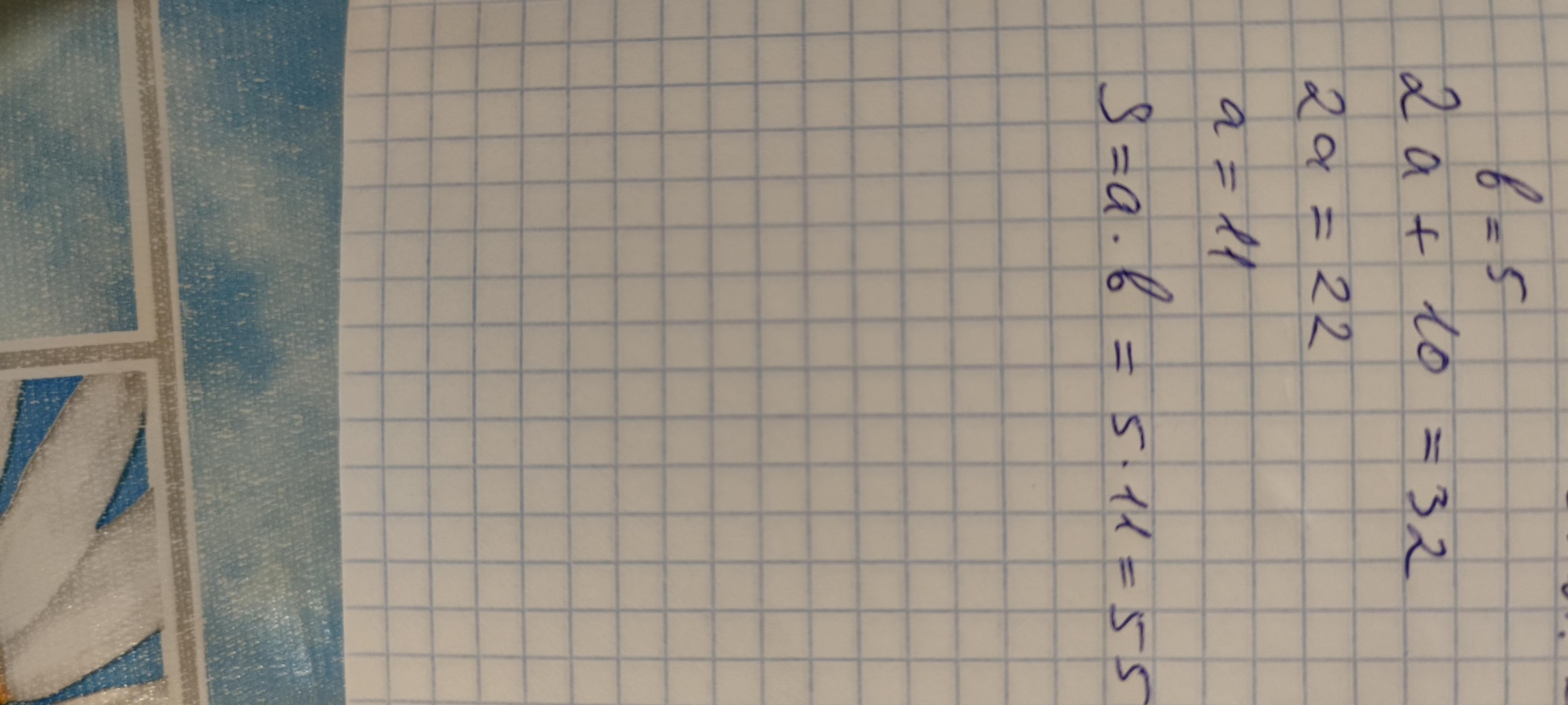 дам 40 баллов ПОМОГИТЕ пожалуйста периметр прямоугольника 32 см, а длина одной его стороны 5 см найдите площадь прямоугольника