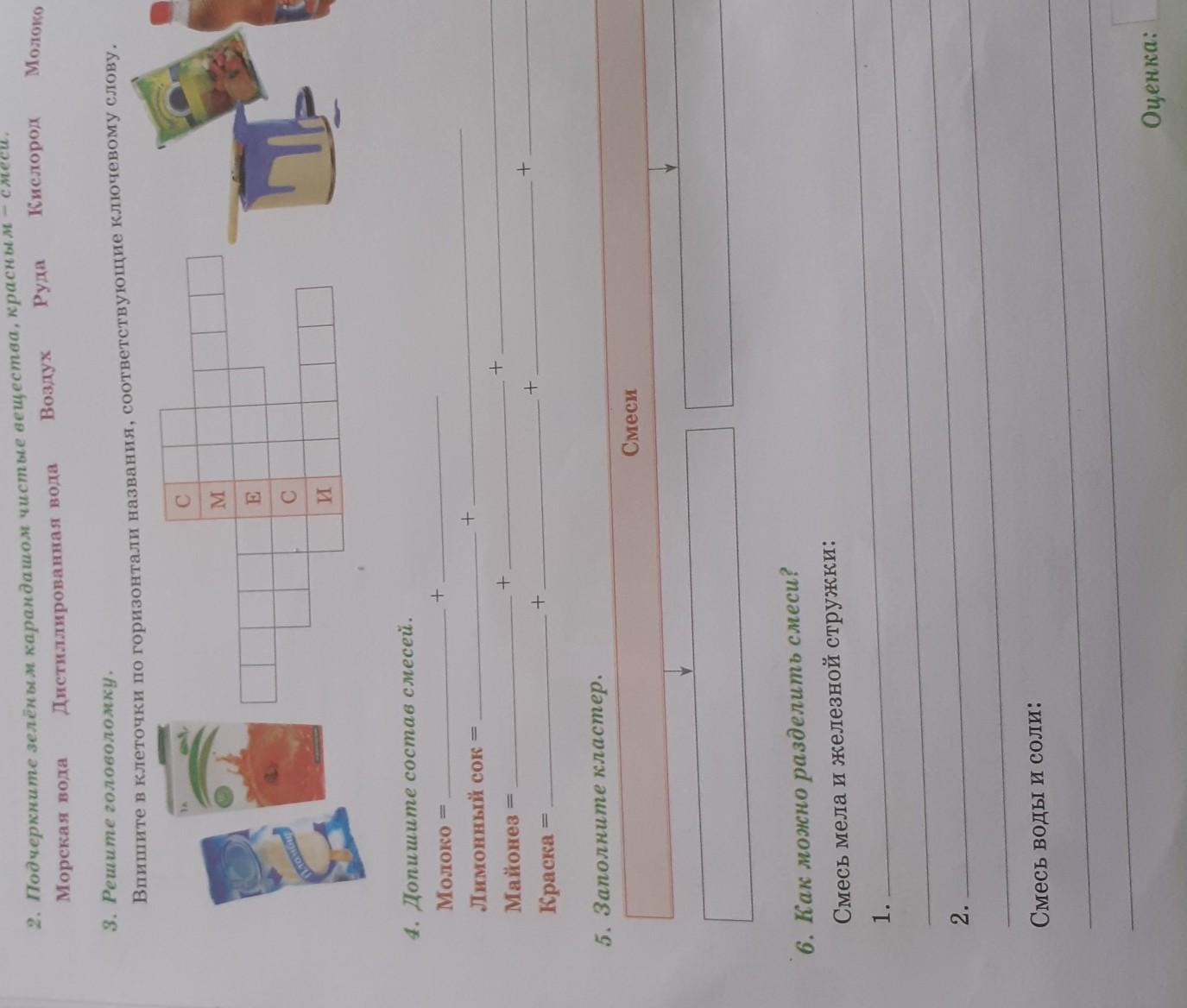 Красным - морская вода, воздух, руда, молоко.