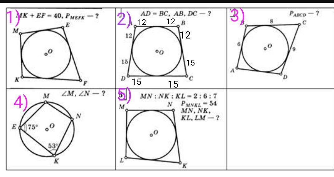 В четырехугольник можно вписать окружность если сумма противоположных сторон равна сумме двух других противоположных сторон