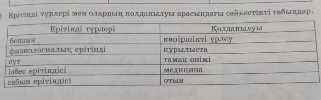 Ерітінді түрлері мен олардың қолданылуы арасындағы сәйкестікті табыңдар.