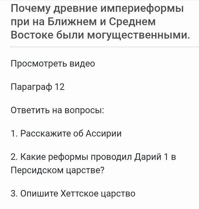 1. Ассирия — древнемесопотамское государство с метропольной территорией на севере современного Ирака, которое населяли древние ассирийцы и покорённые ими народы.