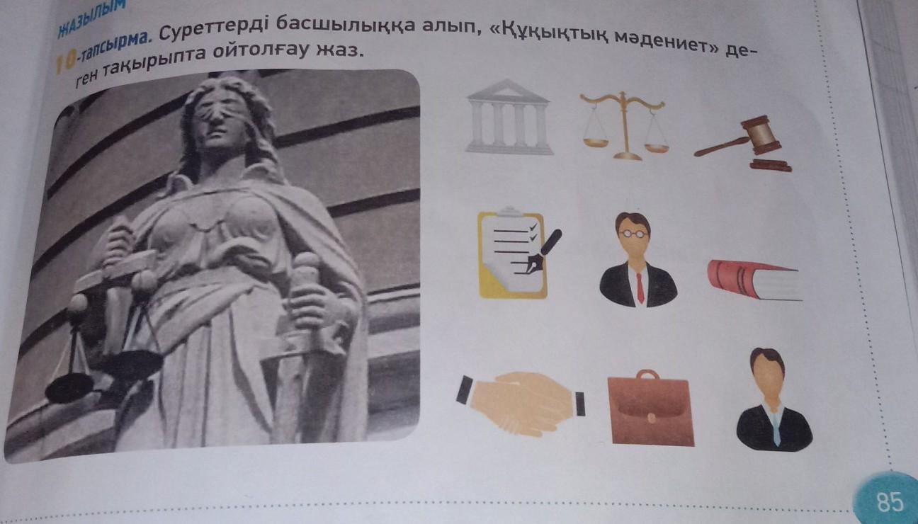 10 тапсырма суреттерді басшылыққа алып Құқықтық мәдениет деген тақырыпта ойтолғау жаз