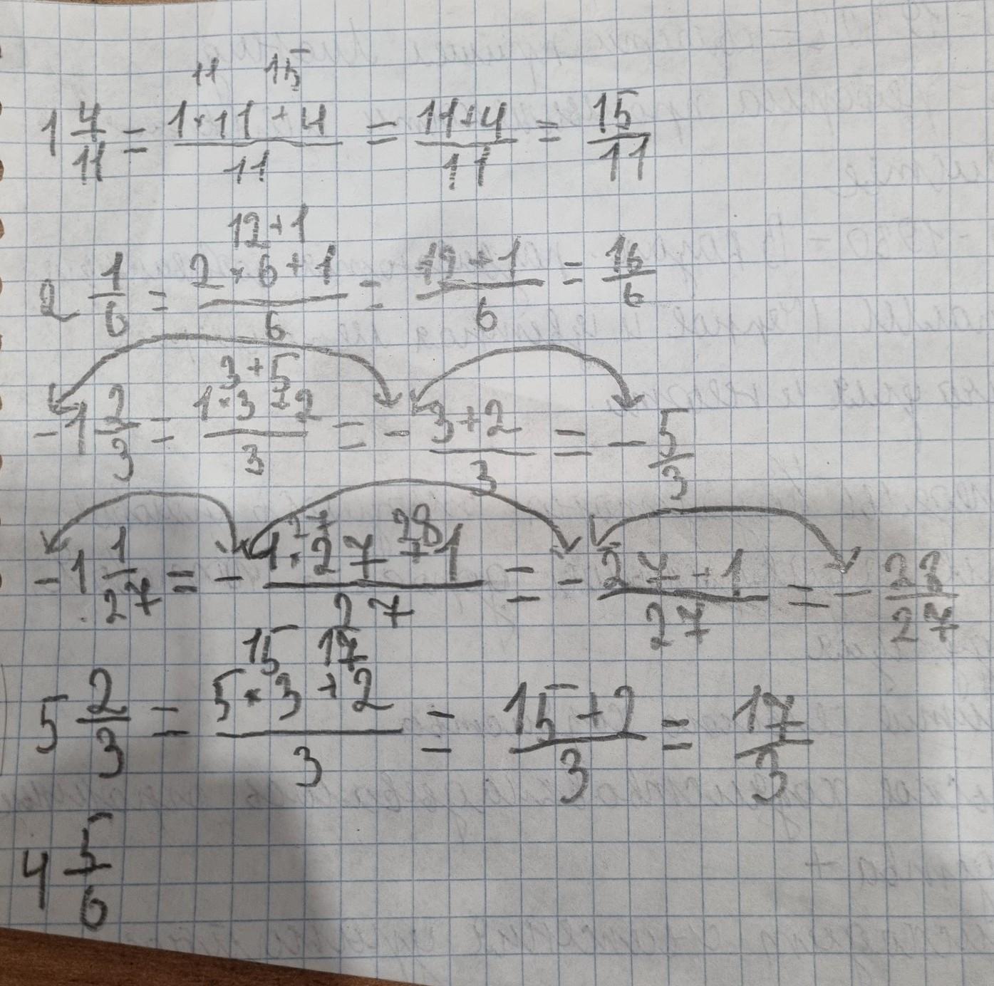 4 5/6 =4×6+5=24+5= 29/6