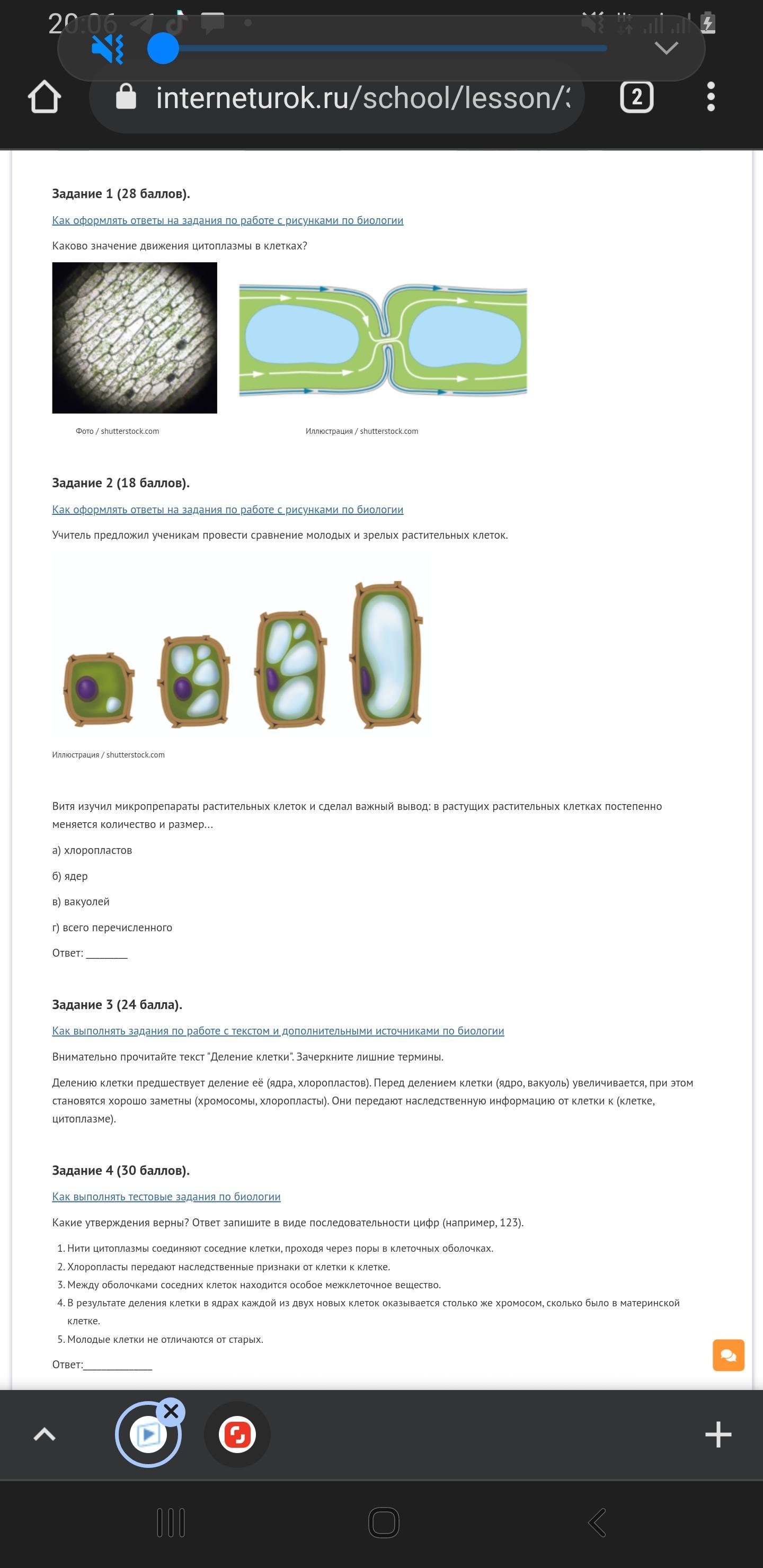 1.Движение цитоплазмы в растительном организме оказывает огромное влияние на его рост и развитие, способствуя транспорту веществ между клетками