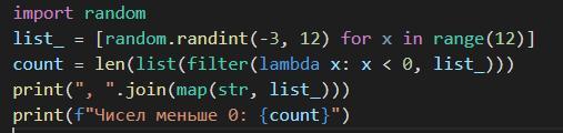 list_ = [random.randint(-3, 12) for x in range(12)]