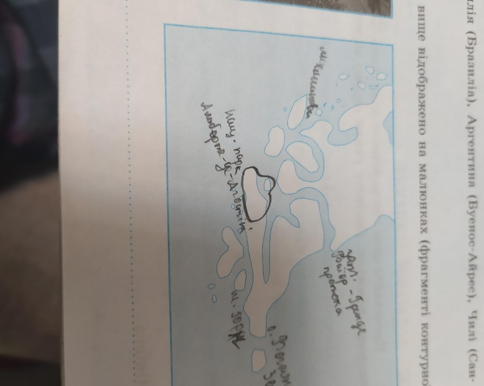 Визначте, які об’єкти з перелічених вище відображено на малюнках (фрагменті контурної карти). [15 баллов]