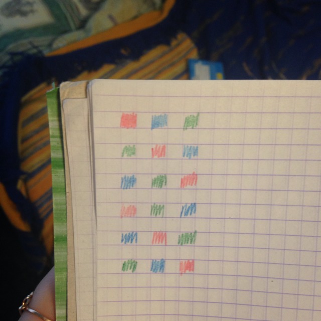Красный, зеленый и синий кубики поставили один на другой. Заполните таблицу. Какие возможные варианты расположения кубиков? Нужно придумать 6 вариантов.