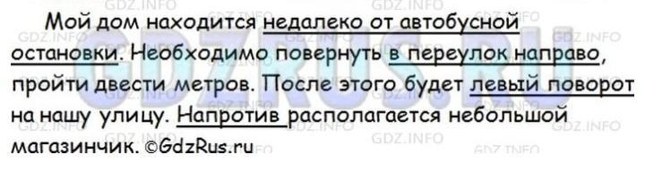Расскажите (кратко), как дойти до вашего дома (магазина, стадиона, театра и т. д.) от платформы электрички, от автобусной, троллейбусной остановки, от метро и т. д. Запишите своё объяснение. Если в нём употреблены обстоятельства места, то подчеркните их условными обозначениями.